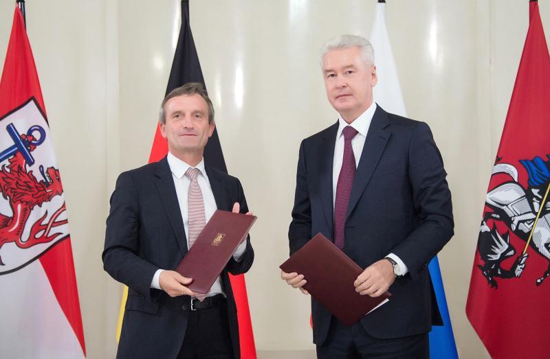 Во время беседы также присутствовали представители правительства Москвы и магистрата Дюссельдорфа.